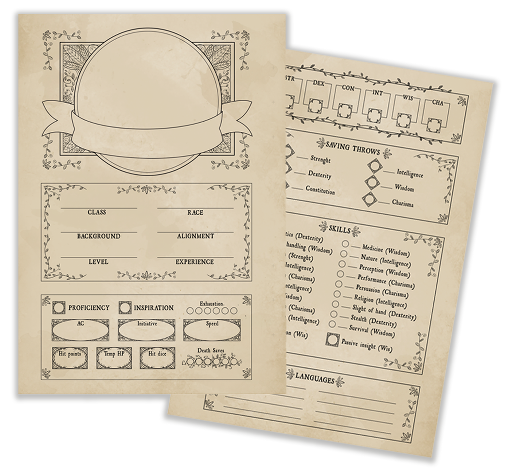 Just for subscribing you’ll get access to the digital files of our character sheets for Dungeons and Dragons 5E.